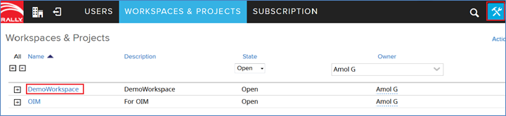 * Click the **Workspaces & Projects** tab.