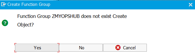 3. Type 'ZMYOPSHUB' and press Enter. If the Function Group exists, skip this step. Click 'Yes'.