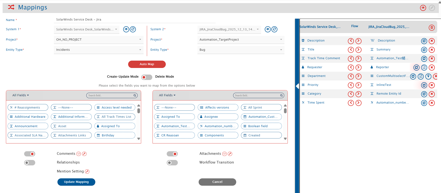 Map the fields between SolarWinds Service Desk and the other system to be integrated and ensure that the data between both systems synchronize correctly. Refer to Mapping Configuration for steps on configuring field mappings.