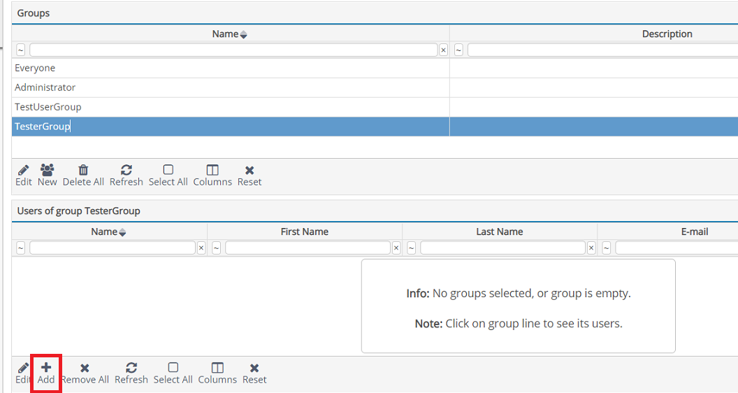 Select "Add" in "Groups with access to project ". Select the newly created and click "Add Selected".