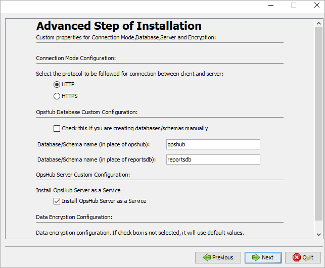 * Select the type of connection protocol you want to use for running the server. If HTTPS is selected, you need to follow one more step [SSL Certificate Configuration](#ssl-certificate-configuration) for advance installation.