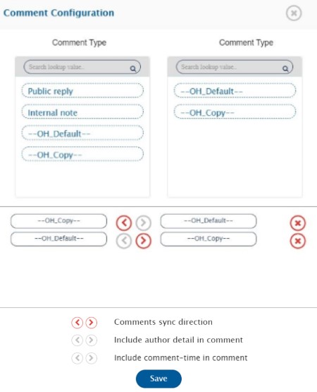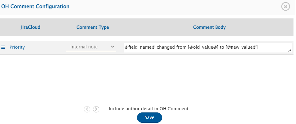 3. Here, the comment type and comment body format can be configured for each field mapped with **OH Comment** field.