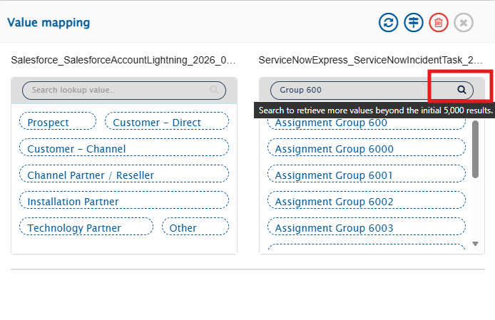 * If the value is not found, click the **Search icon** to retrieve additional values beyond the initial list.