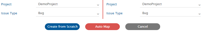 * From the **Issue/Entity Type** drop-down lists, select the relevant entity within the project that you want to integrate. For example, we select Bug in both the systems.