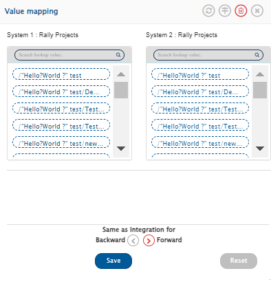 * Value Mapping is used to map the values for the Lookup Type fields. Click ![valuemapping](https://1044594252-files.gitbook.io/~/files/v0/b/gitbook-x-prod.appspot.com/o/spaces%2FDTH8ggq7WDWiNPuTj1Ao%2Fuploads%2Fgit-blob-16bb4e7fde340f426761e766853f3fbecb88e79c%2FValuemapping.png?alt=media) to define the value mapping for all **Lookup Type** fields. The Value Mapping pop-up opens.