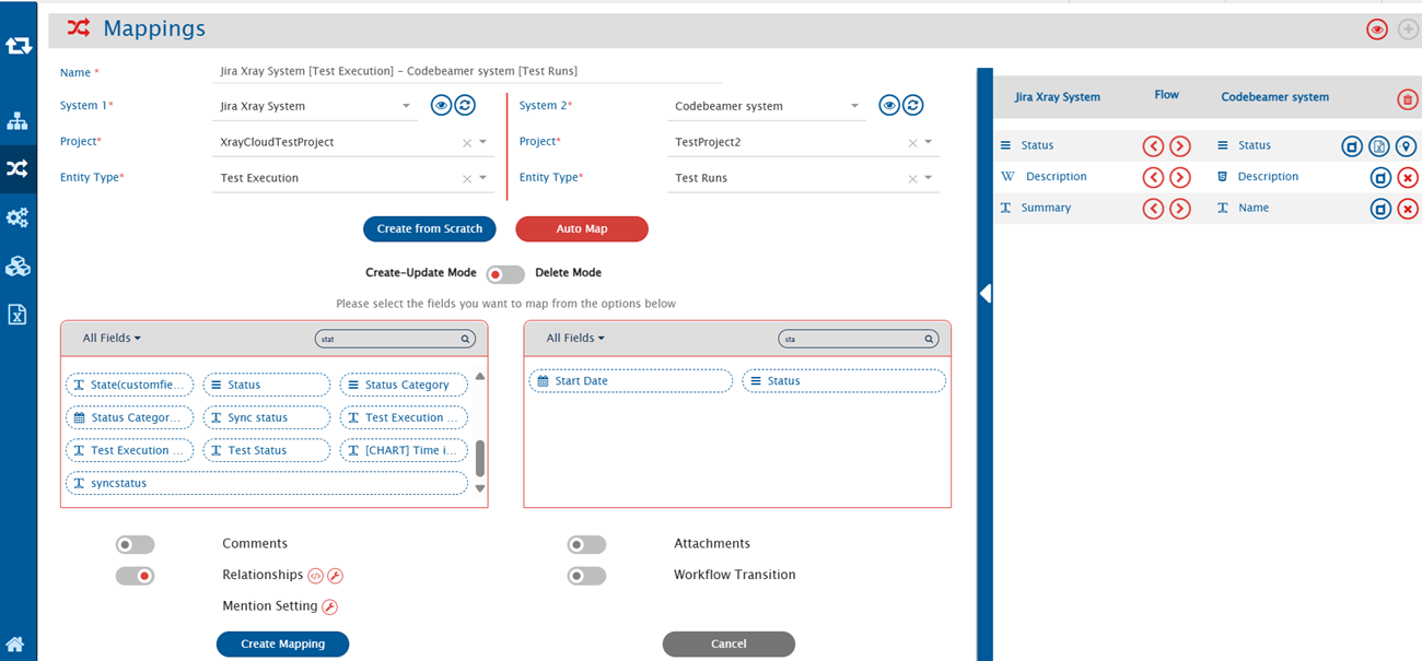 Give a unique name for the mapping in the Name field. For example, the name of the mapping between Test Run in Jira Xray and Test Run in Codebeamer is 2. Jira Xray [Test Execution] - Codebeamer [Test Run].