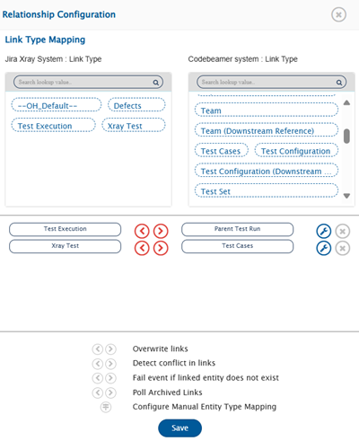 From entity types drop-down list, select Test Execution in Jira Xray and Test Run in Codebeamer.