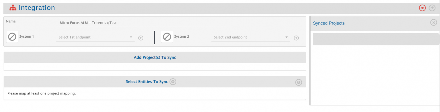 * Click the plus \[+] icon adjacent to the System 1 and System 2 fields one by one to configure Tricentis qTest and Micro Focus ALM.