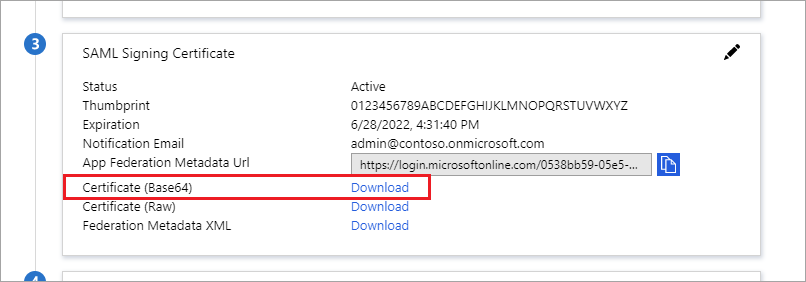 Go to section SAML Signing Certificate and download 'Certificate (Base64)'