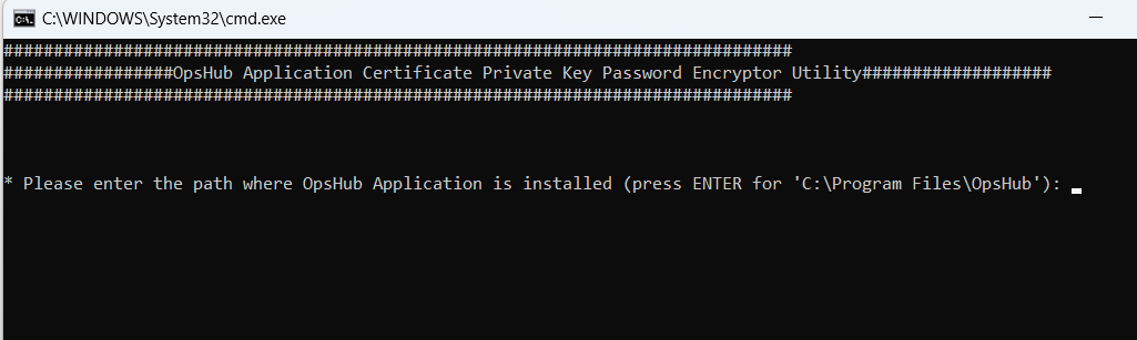 * Run `OpsHubCertificatePasswordsUtility.bat` for Windows system. In case of Linux system, run `OpsHubCertificatePasswordsUtility.sh`.