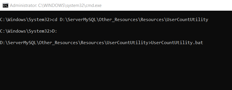 • Execute the bat using command UserCountUtility.bat as shown below: