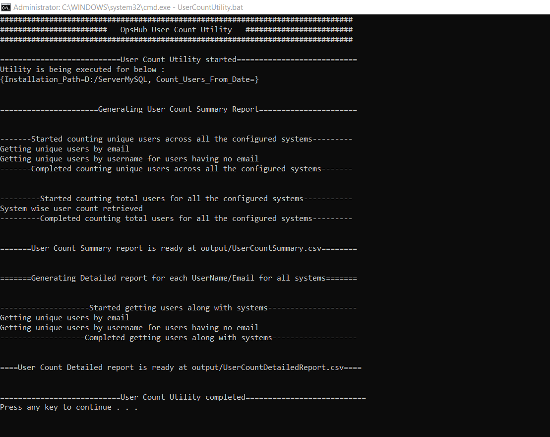 • UserCountUtility.bat: To run the utility if OpsHub Integration Manager is installed on Windows machine.