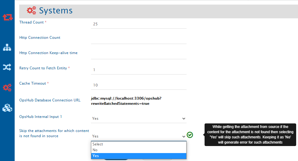* From here, select the **Skip the attachments for which content is not found in source** as **Yes**