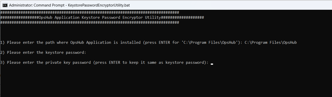 * It will update keystore and private key passwords in OpsHub application in the encrypted format.