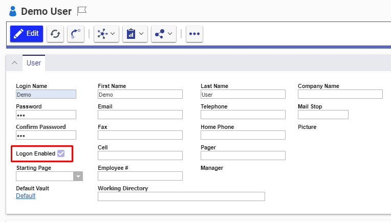 4. Check the **Logon Enabled** box so that user can login from the UI
