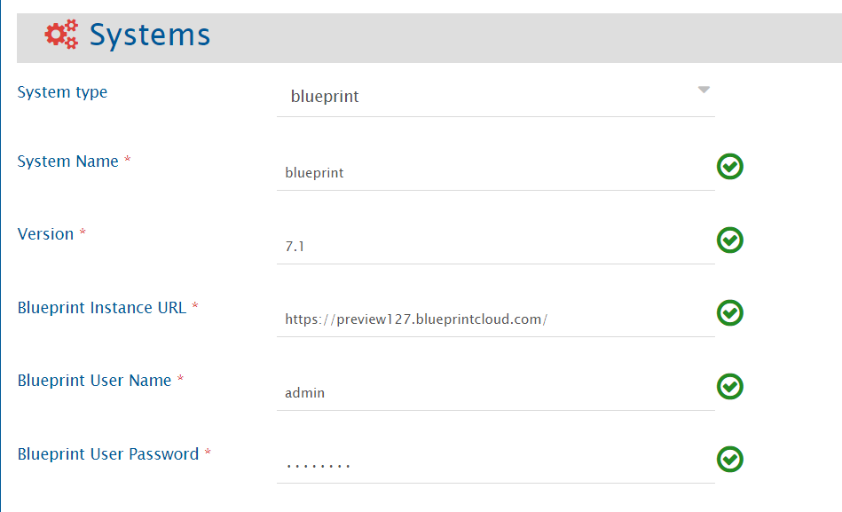 5. Set **Blueprint User Name** to the admin user name of Blueprint.