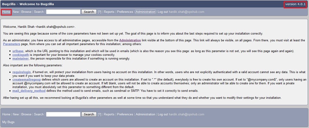 * Click on Home tab, the Bugzilla Version will be visible on top right corner.