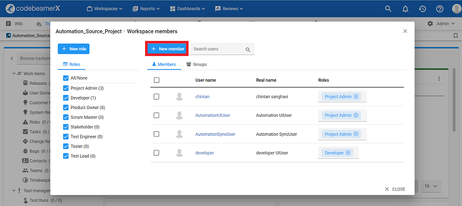 * Click on **Members** (codebeamer) / **Members & roles** (codebeamer X) option.