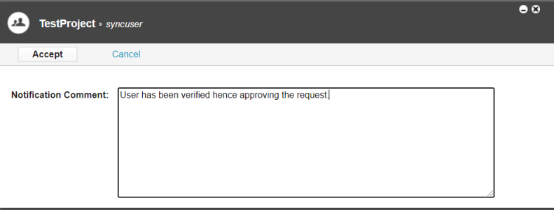* Provide Notification Comment and select Accept/Reject button accordingly as shown in the screenshot below:
