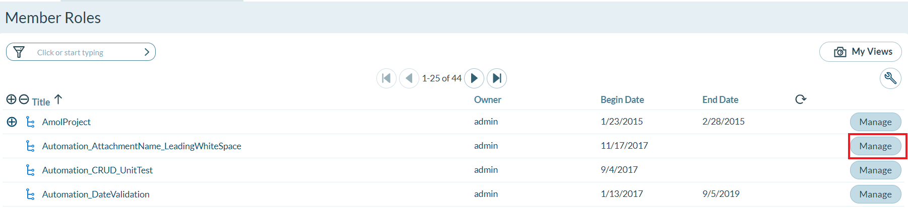 3. In **Projects** tab navigate to **Member Roles** tab and find the project on which permission need to be granted.