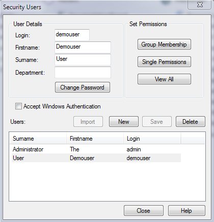 5. Security Users dialogue box will appear. Fill in the details.