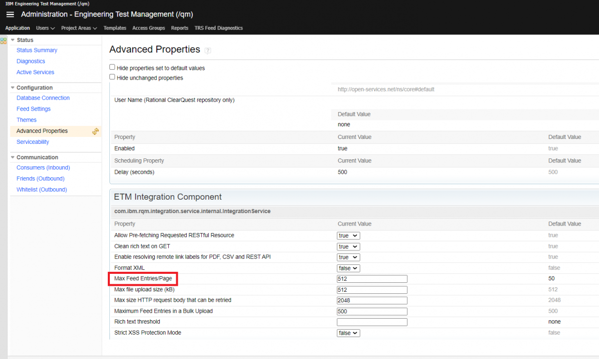 * In ETM, maximum entries that can be configured per page in the admin panel is between 1-512.