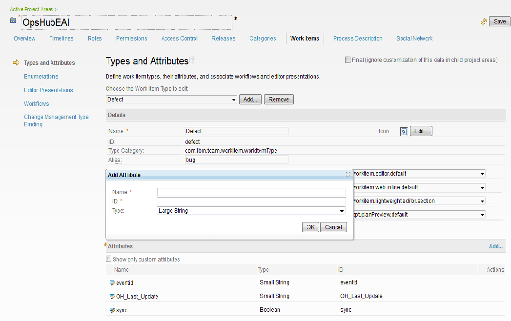 > **Note**: 'Large String' attribute type is not supported while configuring criteria query. **Note**: In the criteria query for enumeration fields such as priority, severity, etc., the criteria query should be formed as: `oslc_cmx:priority="priority.literal.l3"`. Here the `priority.literal.l3` is the internal name of the field value. **Note**: In multi-project polling, if the criteria query is on custom enumeration field, the lookup values of the custom enumeration field should be of the same name for the criteria to work across multi-projects.