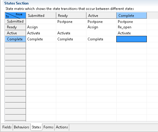 * Click the **States** tab to view the state transition matrix.