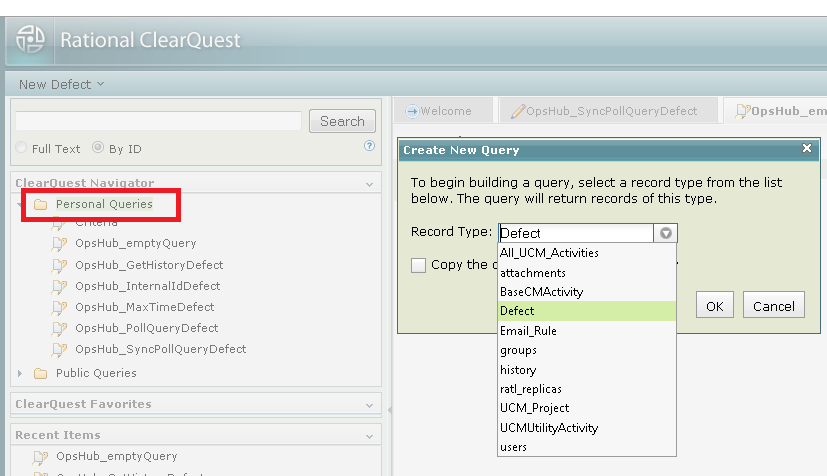 * Navigate to IBM Rational ClearQuest **Navigator** section.