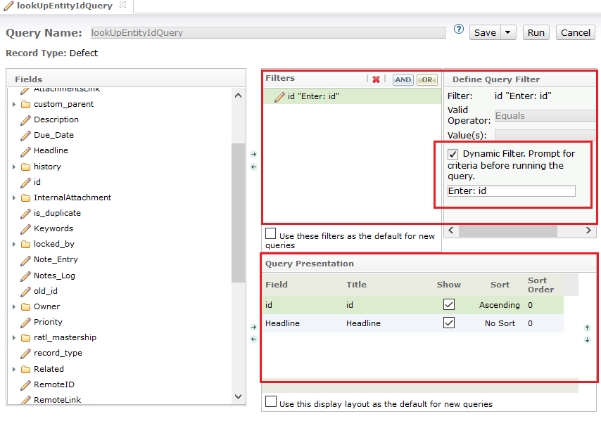 * Follow the given order of fields in Filters, and Query Presentation.