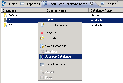 * After Check-In, click the **Upgrade Database** in IBM Rational ClearQuest Database Admin tab by right clicking on the database under which this whole set of configurations is done.