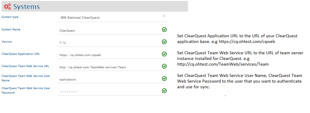 Before the user resumes the integration, he/she must first configure IBM Rational ClearQuest. Click [System Configuration](https://docs.opshub.com/v7.219/integrate/configure-integrations/system-configuration) to learn the step-by-step process to configure a system. Refer the screenshot given below for reference.