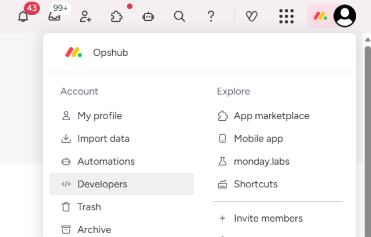 2. Navigate to monday.labs by clicking on your profile picture in the top right-hand corner of your screen. Refer to the screenshot below: