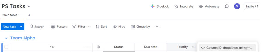 5. Click the dropdown menu to the right of the column title, and the Column ID will be displayed. Refer to the screenshot below: