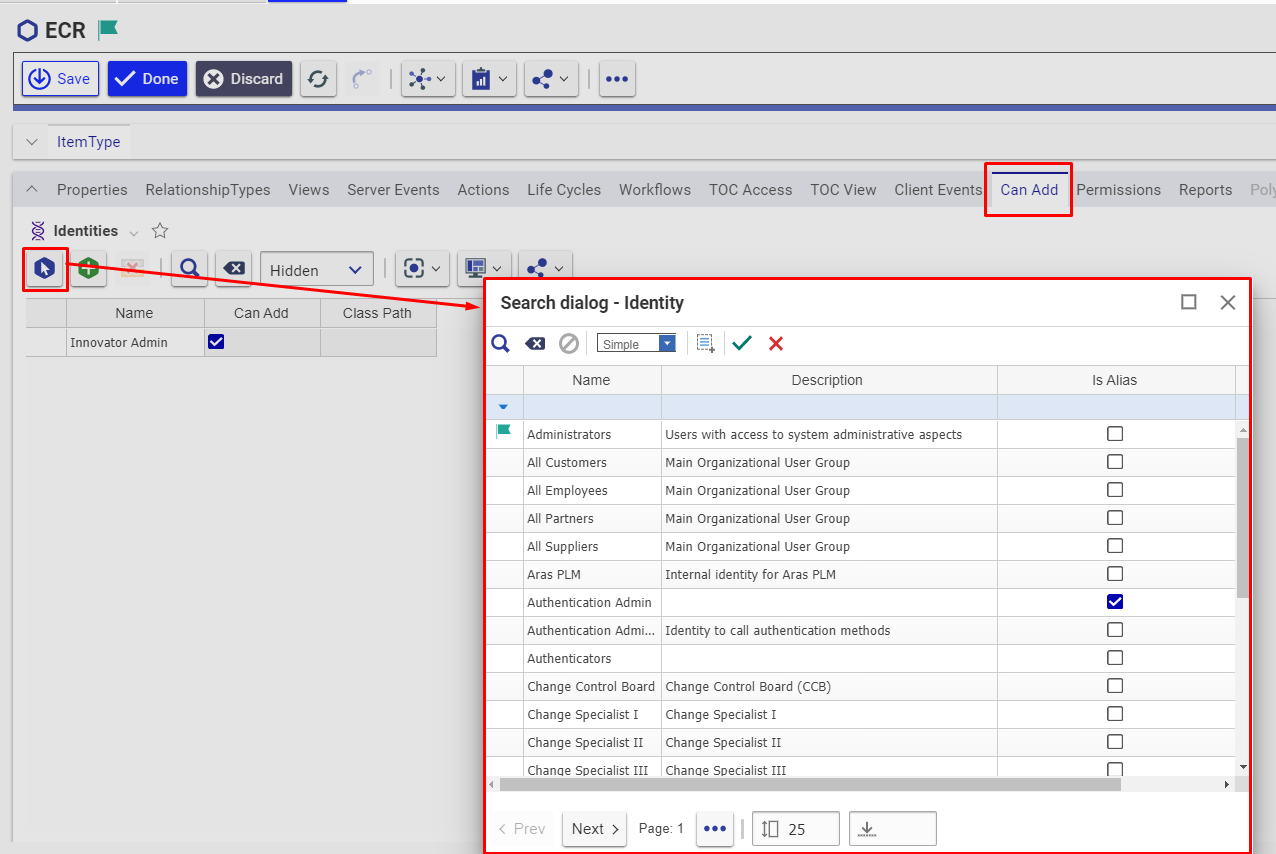 ### Assign Identity in “Can Add” Tab of Item Type