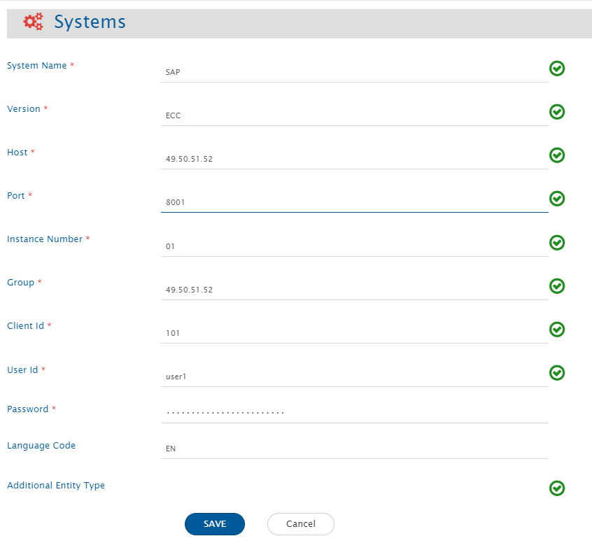 * Sap connector depends on 'Sapjco3.dll' (for Windows) and 'libSapjco.so' (for Linux).