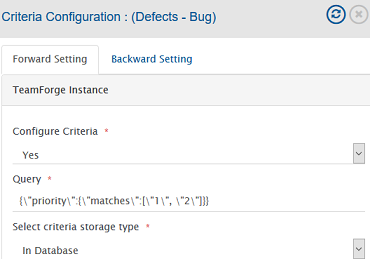 To configure criteria in TeamForge, integration needs to be created with TeamForge as the source system. You can set query on a particular ItemType.