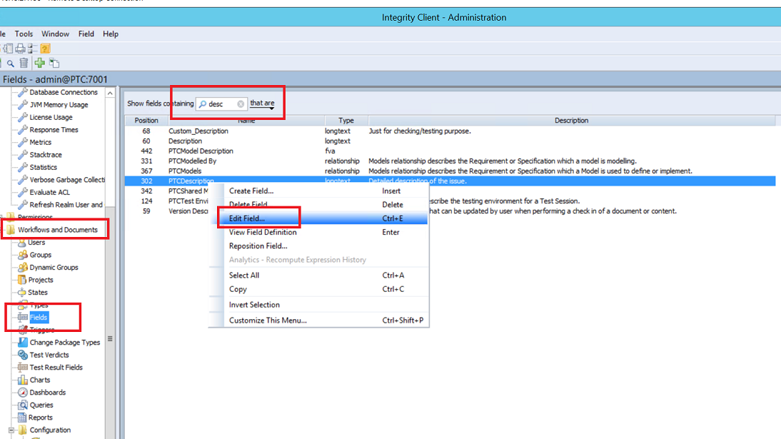 * Go to Windchill RV\&S Integrity Admin Client > Workflows and Documents.