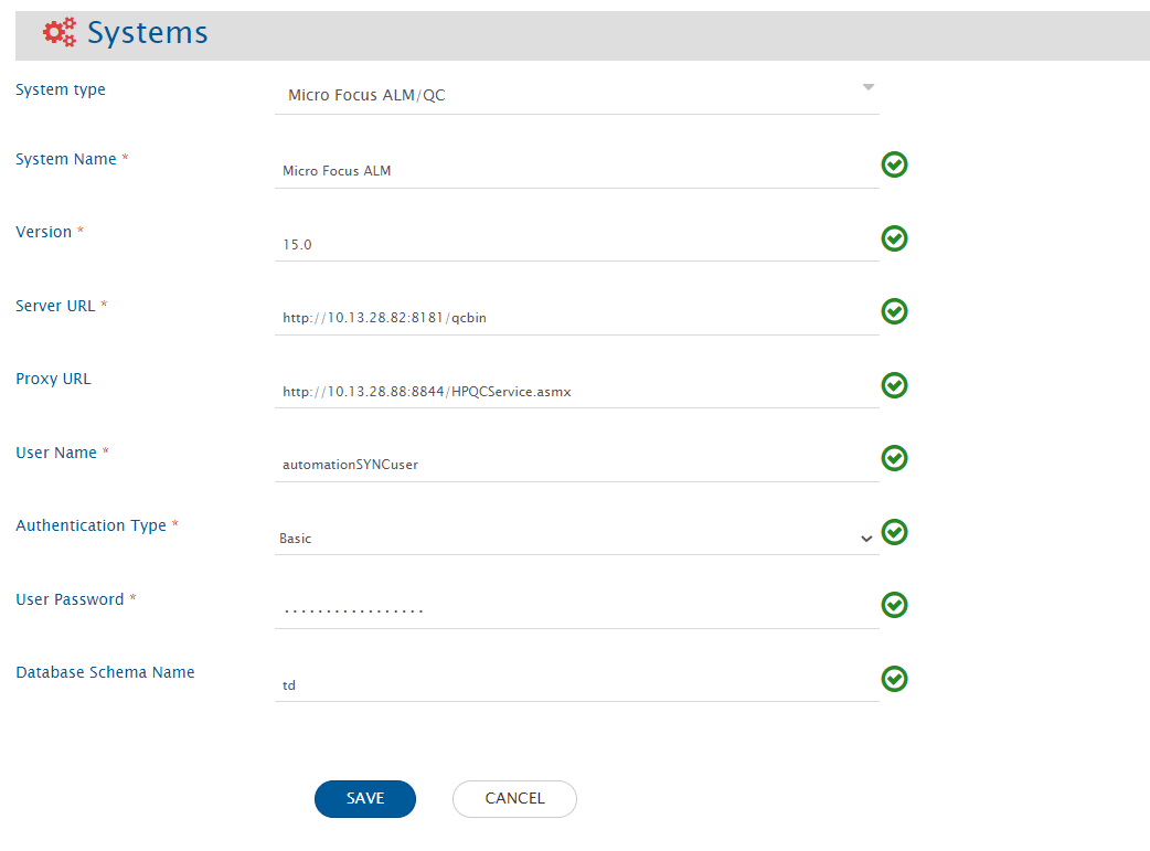 | System Name                                | Always                                       | Provide Micro Focus ALM/QC System Name.                                                                                                                                                                                                                                                                                                                                   |