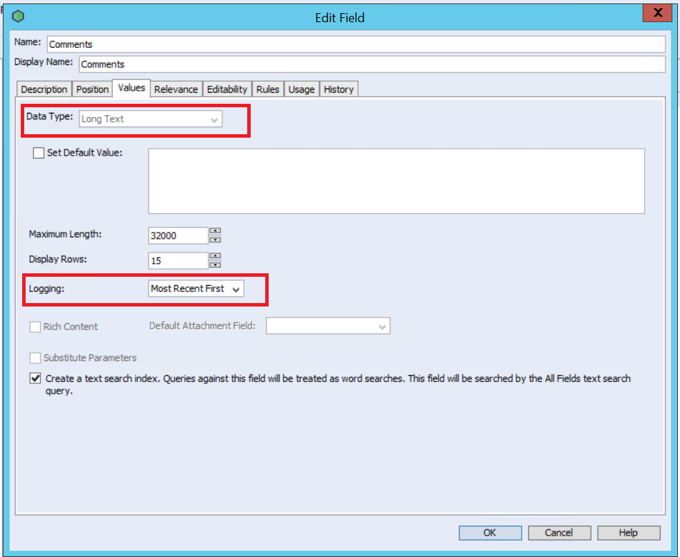 * If the **Data Type** of the field is **Long Text** and it is configured as a **Rich Text** field in Windchill RV\&S system, then only, it will be considered a **Rich Text** field in <code class="expression">space.vars.SITENAME</code> mapping; otherwise, it will be considered a **Text** type field in the mapping.