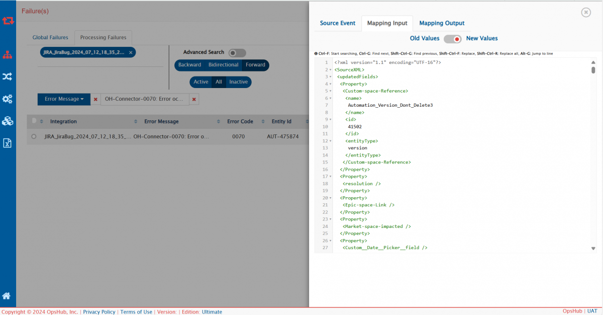 * If the failures are present in the older versions(before V7.170 upgrade): In that case, to view the mapping input & mapping output, the failures should be retried to have the information.