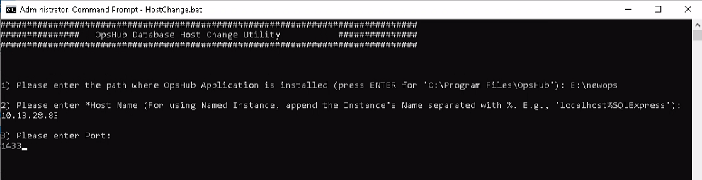 * If the new Host Name is a named instance, then there is no input required for the Port. Hence, after entering the Host Name, utility will check the connection with the new Host: