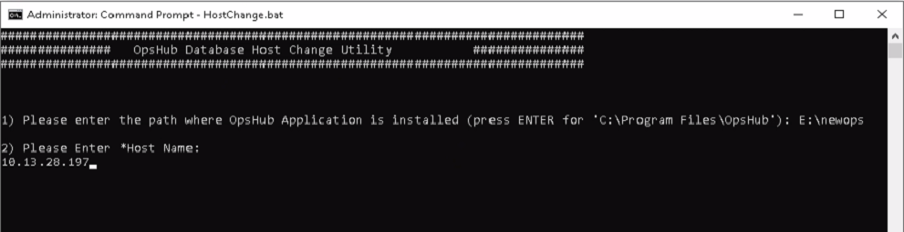* Open Command Prompt with administrator privileges and go to <code class="expression">space.vars.SITENAME</code>'s directory `<Installation Folder or OpsHub>/Other_Resources/Resources/HostChange` using command **`cd <Installation Folder or OpsHub>/Other_Resources/Resources/HostChange`**