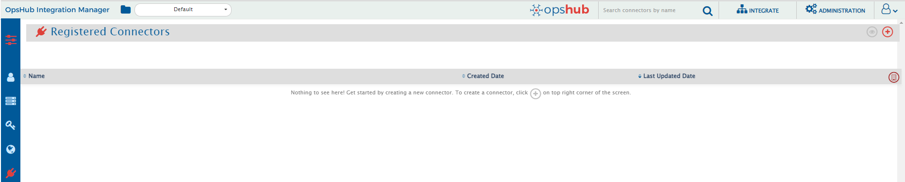 To register a connector, click the "+" icon on the top right corner of the "Registered Connectors" page.\