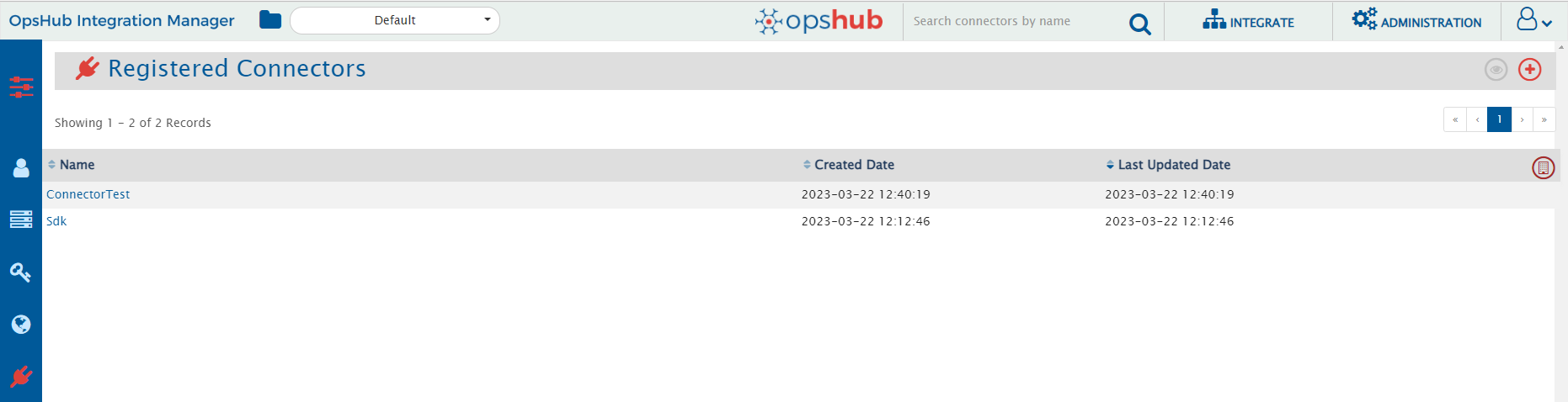 The registered connectors are available in the form of a list on the "Registered Connectors" page as shown in the image below: