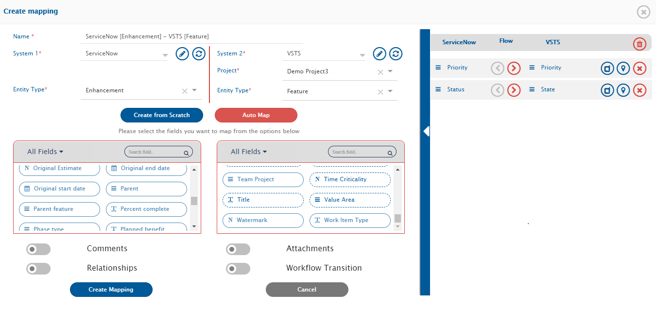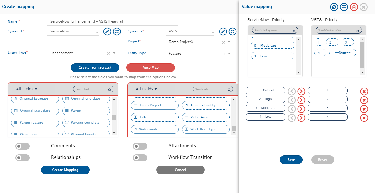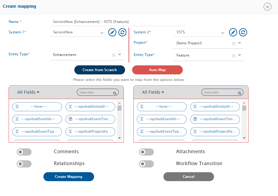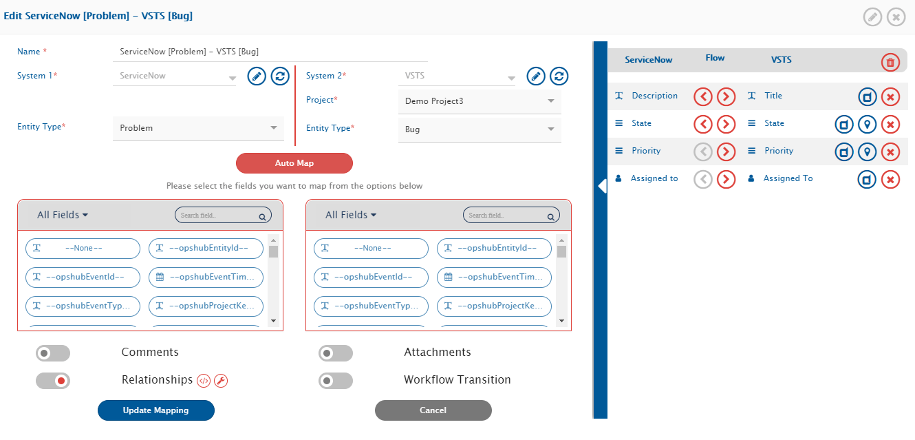 * Map entities like comments and attachments. Refer to [Comments](https://docs.opshub.com/v7.221/integrate/configure-integrations/mapping-configuration#comments) and [Attachments](https://docs.opshub.com/v7.221/integrate/configure-integrations/mapping-configuration#attachments) for details.