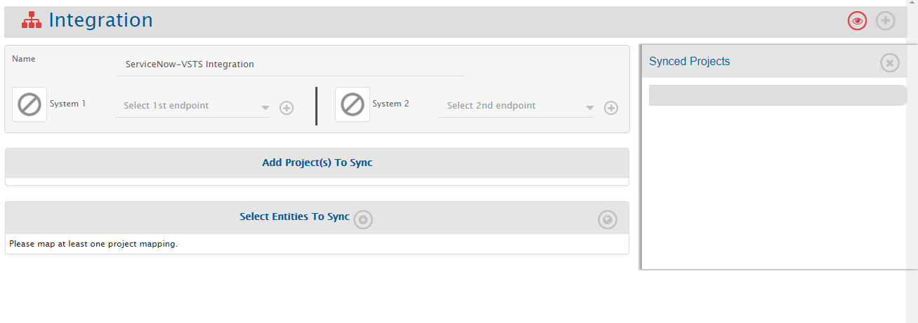 * Click the plus \[+] icon adjacent to the System 1 and System 2 fields one by one to configure ServiceNow and Azure DevOps Services (VSTS).